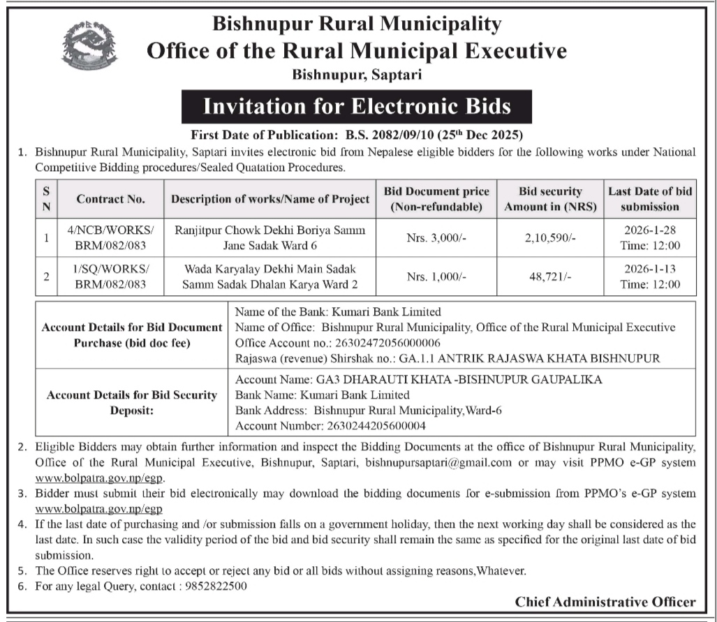 सार्वजनिक खरिद/बोलपत्र सूचना